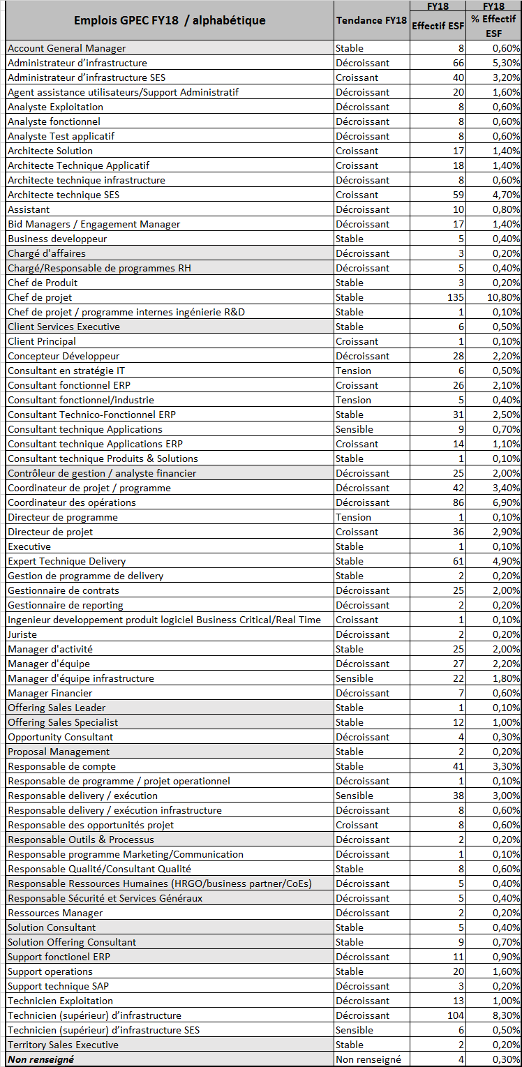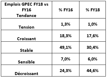 Quelles sont les catégories d’emploi GPEC et leur tendance FY18 ?